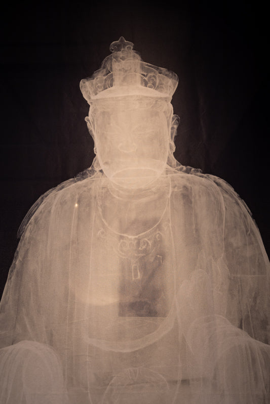 X-Ray Image of the Statue of Seated Bodhisattva in Vitarkamudrā Printed on Thick Translucent Fabric